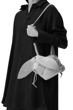 menta fresca/branco suave 80ZJ87 mulheres bolsa bucket pequena com franjas em couro de bezerro Loewe