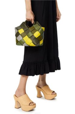 preto/multicolorido 80ZJ100 mulheres sacolinha quadrada de jornal em papel e couro de bezerro Loewe