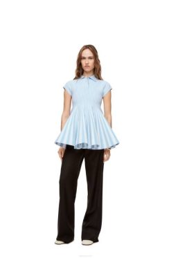 amarelo/azul/laranja 80ZJ1096 mulheres vestido camisa listrada desconstruída em algodão Loewe
