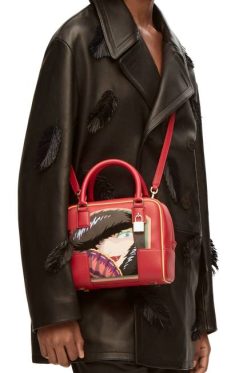 vermelho 80ZJ213 mulheres bolsa mini quebra-cabeça em couro de bezerro acetinado Loewe
