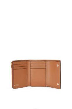 bronzeado 80ZJ1230 mulheres Carteira com três dobras anagrama em couro de bezerro granulado Loewe