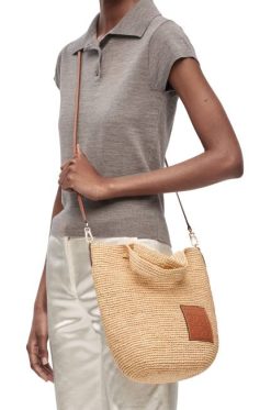 natural/bronzeado 80ZJ18 mulheres bolsa cesto anagrama em palmeira iraca e couro de bezerro Loewe
