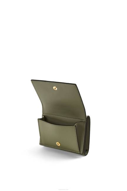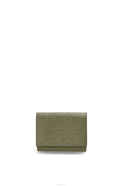 cinza pérola 80ZJ1206 mulheres Carteira com três dobras anagrama em couro de bezerro granulado Loewe