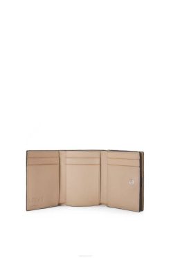 areia 80ZJ1214 mulheres Carteira com três dobras anagrama em couro de bezerro granulado Loewe