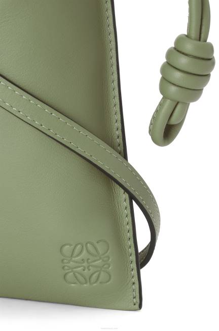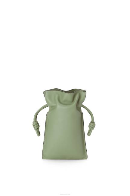 bolsa utilitária em couro de bezerro nappa com alça de ombro e fecho de cordão com os característicos nós enrolados do flamenco.
