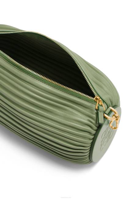 uma bolsa tubular versátil em pele de cordeiro napa plissada que se transforma em pulseira. acabamento com placas de couro de bezerro em relevo em cada extremidade.
