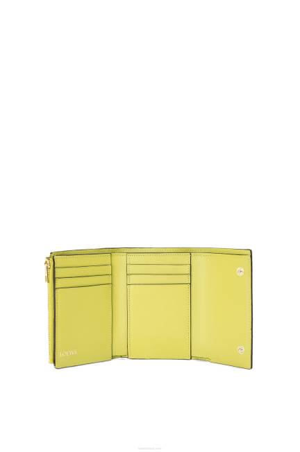 cinza pérola 80ZJ1206 mulheres Carteira com três dobras anagrama em couro de bezerro granulado Loewe