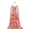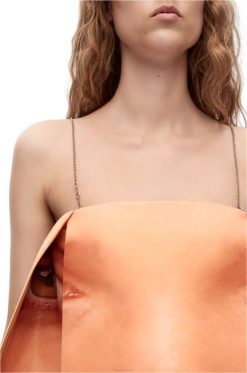 Minivestido de alças em duchesse técnico com estampa de rosto gerada por computador, corpete embutido e alças em corrente destacáveis e ajustáveis.