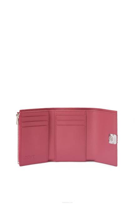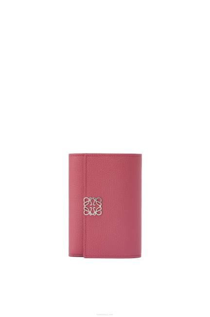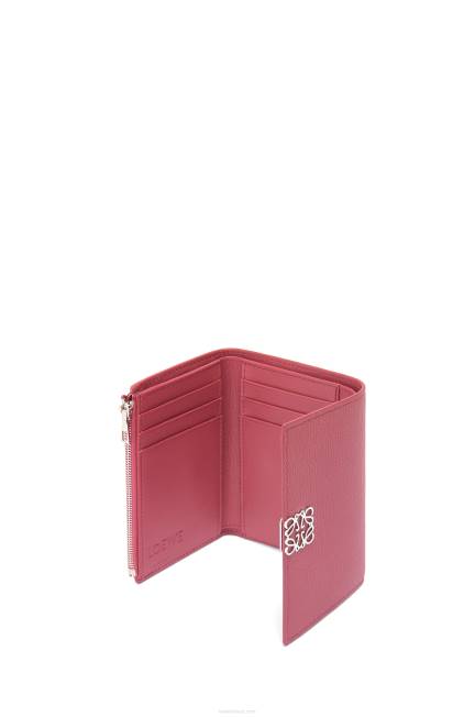 ameixa 80ZJ1239 mulheres carteira compacta com aba anagrama em couro de bezerro granulado Loewe