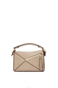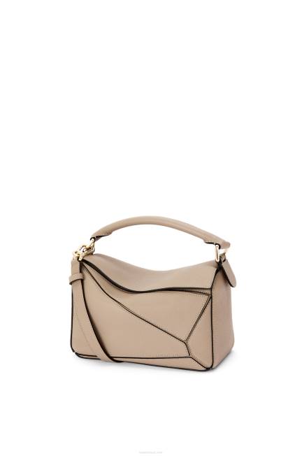 areia 80ZJ397 mulheres pequena bolsa quebra-cabeça em couro de bezerro granulado macio Loewe