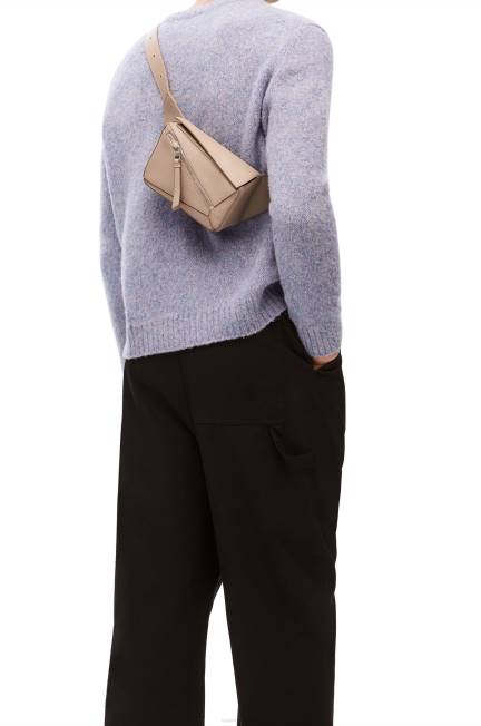 a bolsa quebra-cabeça é a bolsa de estreia da loewe do diretor criativo jonathan anderson. uma forma cubóide e uma técnica de corte precisa criam as linhas geométricas distintas do quebra-cabeça. esta versão mini bumbag é confeccionada em couro de bezerro clássico.