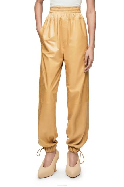 areia/manteiga 80ZJ1115 mulheres calça elástica em napa papery Loewe