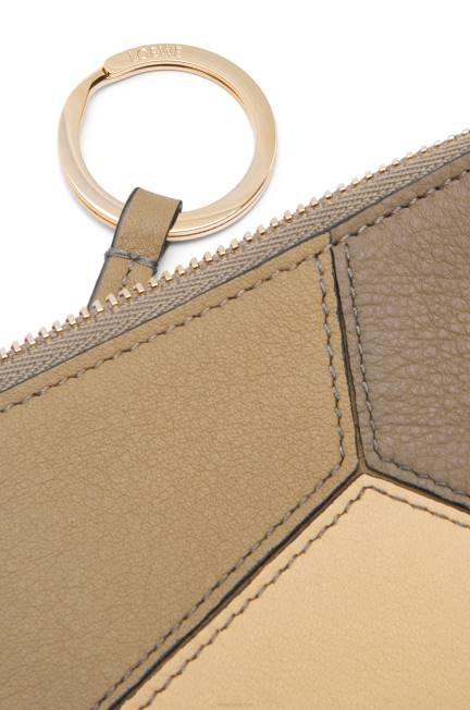 argila verde/manteiga 80ZJ1369 mulheres porta-cartões de moedas de quebra-cabeça em couro de bezerro clássico Loewe