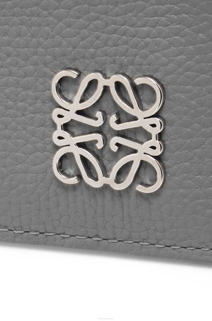 asfalto cinza 80ZJ1384 mulheres Porta-cartões quadrado anagrama em couro de bezerro granulado com corrente Loewe