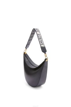 a loewe luna é uma bolsa hobo meia-lua meticulosamente trabalhada com uma silhueta escultural e um fecho de lábio duplo curvo. um ilhó deslizante oculto permite que a bolsa seja personalizada com um pingente ou uma alça adicional. esta versão é confeccionada em couro de bezerro acetinado com alça em jacquard loewe.