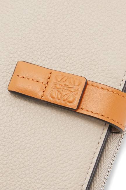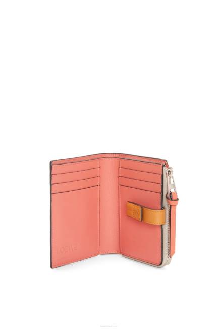 carteira fina dobrável em couro de bezerro granulado macio em cores contrastantes.
