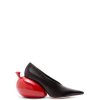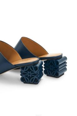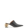 Mules em couro de bezerro com bico fino e salto tonal anagrama em metal inspirado em joalheria.