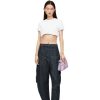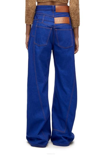 Jeans de cinco bolsos em jeans com cós duplo trompe l’oeil e pespontos contrastantes.