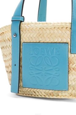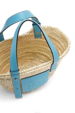 azul claro 80ZJ57 mulheres sacolinha em folha de palmeira e couro de bezerro Loewe