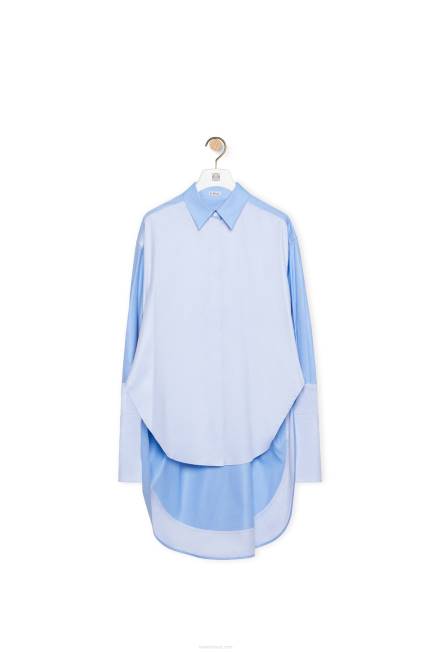 azul claro 80ZJ920 mulheres camisa trompe l’oeil em algodão Loewe