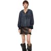 ouro 80ZJ1150 mulheres jaqueta virada para cima em camurça de pele de cordeiro Loewe