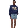 saia midi jeans assimétrica com bolsos laterais e um bolso traseiro aplicado.