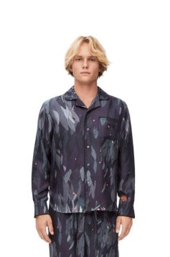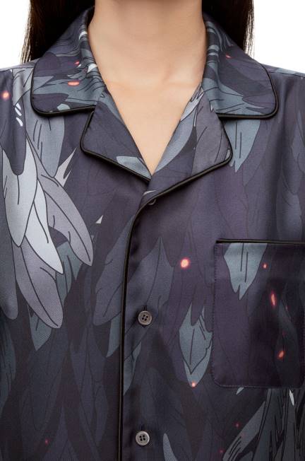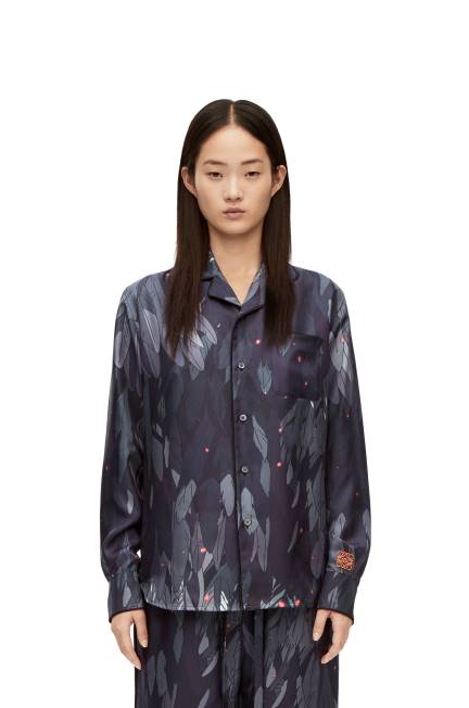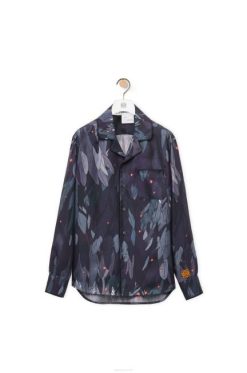 azul-marinho 80ZJ944 mulheres blusa de pijama de penas em seda Loewe