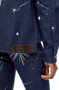 azul-marinho 80ZJ945 mulheres overshirt magic sky em denim Loewe