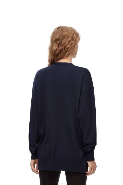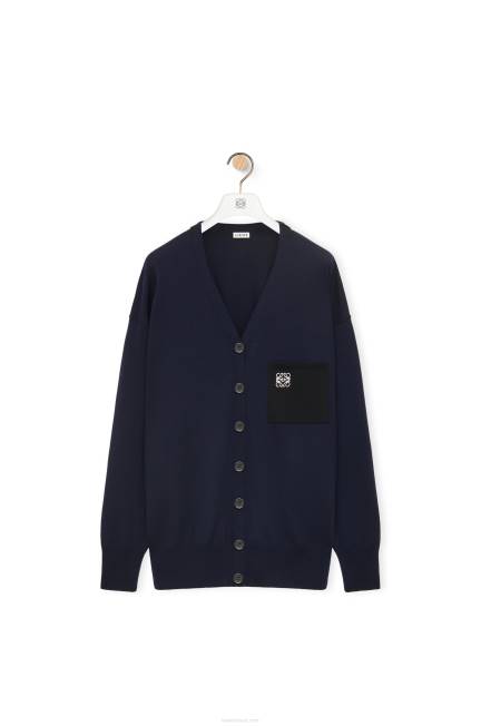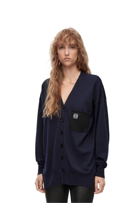 azul-marinho 80ZJ986 mulheres cardigã de bolso anagrama em lã Loewe