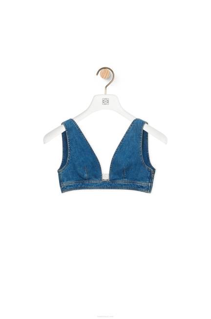 Bralette decote em V em denim com detalhe de anagrama em tom de prata