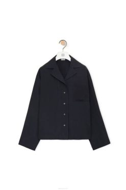 azul profundo 80ZJ927 mulheres blusa de pijama anagrama em seda Loewe