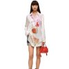 camisa dobrada confeccionada em popeline leve de algodão listrado.