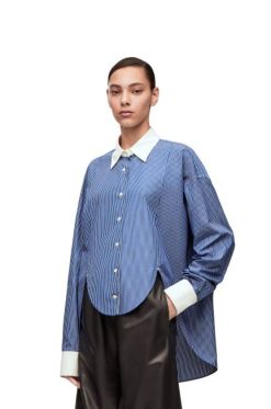 camisa dobrada confeccionada em popeline leve de algodão listrado.