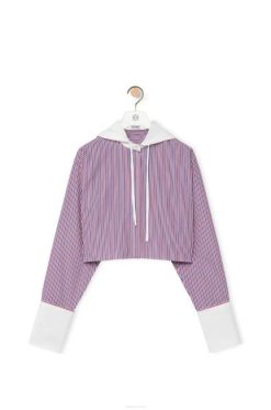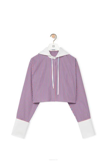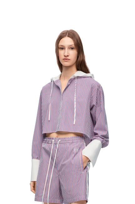 camisa cropped com capuz confeccionada em popeline leve de algodão listrado.