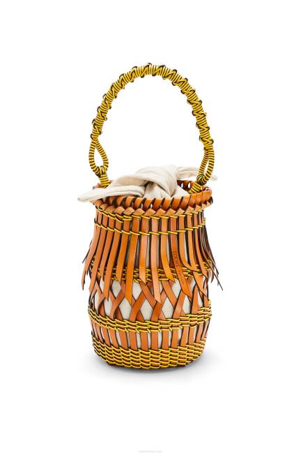 bege/amarelo 80ZJ186 mulheres bolsa bucket com franjas em couro de bezerro Loewe