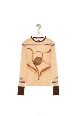amarelo vermelho 80ZJ852 mulheres top de manga longa em malha Loewe