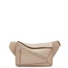 a bolsa quebra-cabeça é a bolsa de estreia da loewe do diretor criativo jonathan anderson. uma forma cubóide e uma técnica de corte precisa criam as linhas geométricas distintas do quebra-cabeça. esta versão pequena bumbag é confeccionada em couro de bezerro clássico.