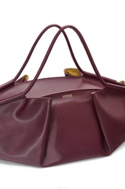Borgonha 80ZJ415 mulheres bolsa xl paseo em couro de bezerro napa brilhante Loewe