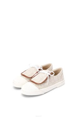 Tênis de cadarço em couro de bezerro com cabedal macio com monograma em L e solado de borracha cor de mel que se curva ao redor do dedo do pé e na parte de trás do calcanhar.