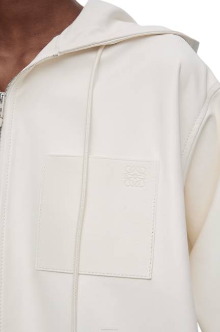 jaqueta com capuz confeccionada em pele de cordeiro napa acetinada leve com toque de luva ultra macio.