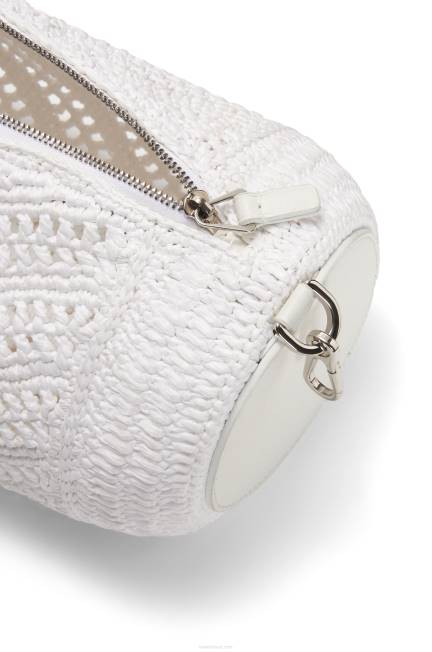 branco 80ZJ377 mulheres bolsa de pulseira em ráfia e couro de bezerro Loewe