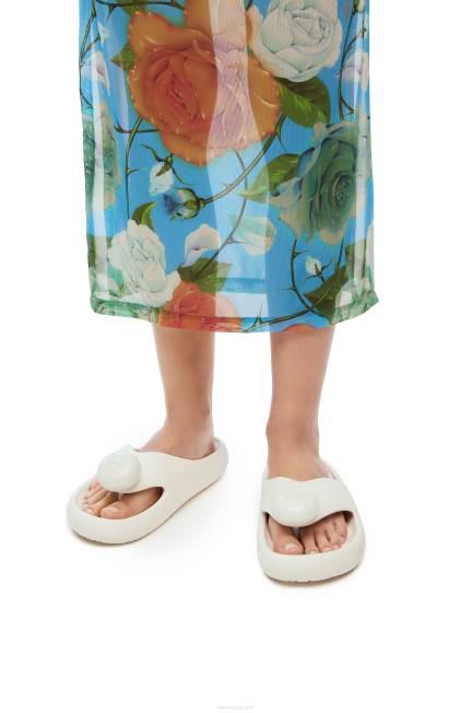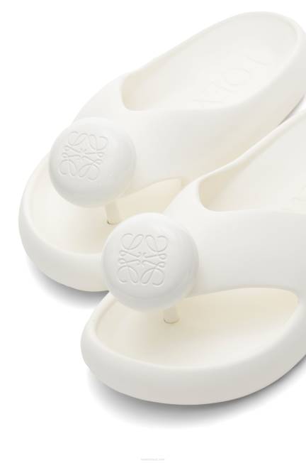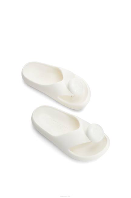 Sandália biqueira em espuma de borracha clara com detalhe em anagrama gravado e palmilha ergonômica.