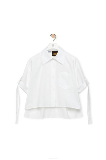 branco 80ZJ877 mulheres camisa de trabalho cropped em algodão Loewe