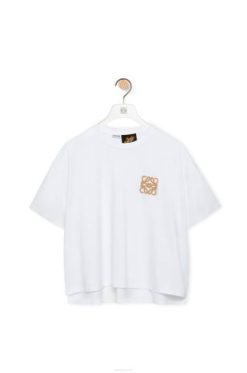 T-shirt boxy decote careca em algodão com anagrama bordado texturizado.