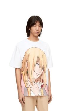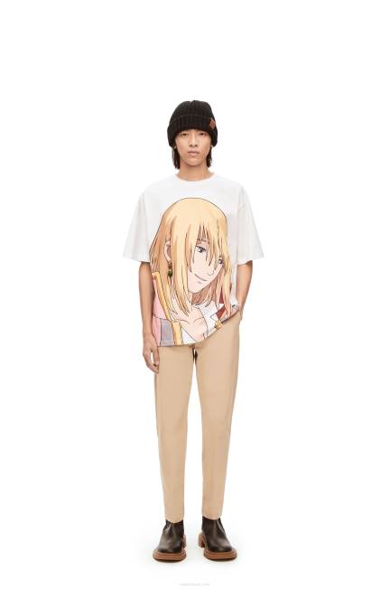 branco/bege 80ZJ835 mulheres t-shirt com aplicações howl em algodão Loewe