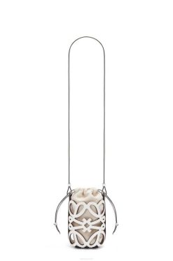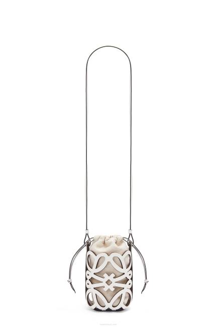 preto/cru 80ZJ549 mulheres Bolso recortado em anagrama em clássico couro de bezerro e lona Loewe