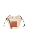 Branco natural 80ZJ23 mulheres bolsa bucket com cordão em folha de palmeira e couro de bezerro Loewe
