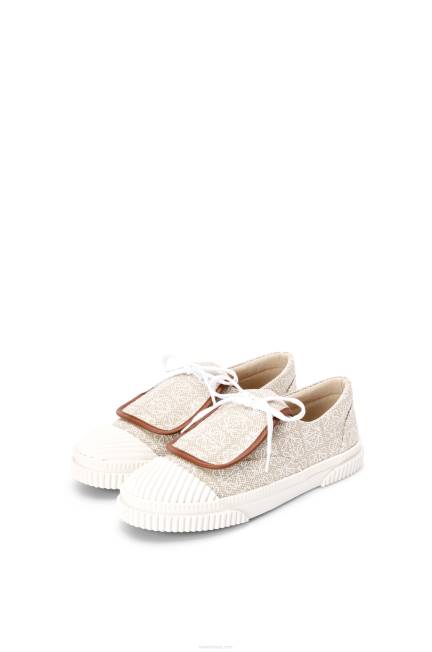 Tênis de lona com cadarço todo em jacquard anagrama com solado de borracha vulcanizada contrastante e biqueira canelada.
