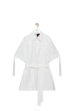 branco óptico 80ZJ1053 mulheres mini vestido workwear em algodão Loewe
