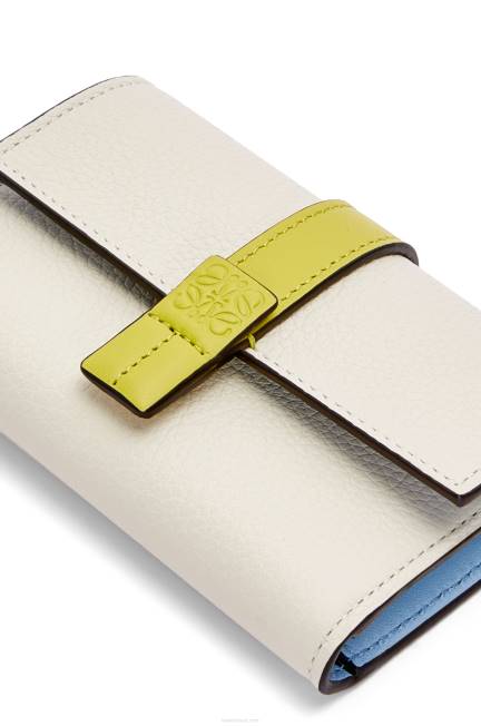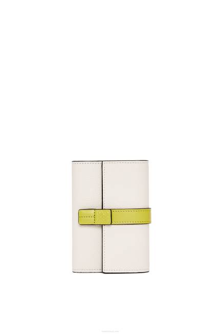 branco suave/amarelo limão 80ZJ1228 mulheres carteira vertical pequena em couro de bezerro granulado macio Loewe